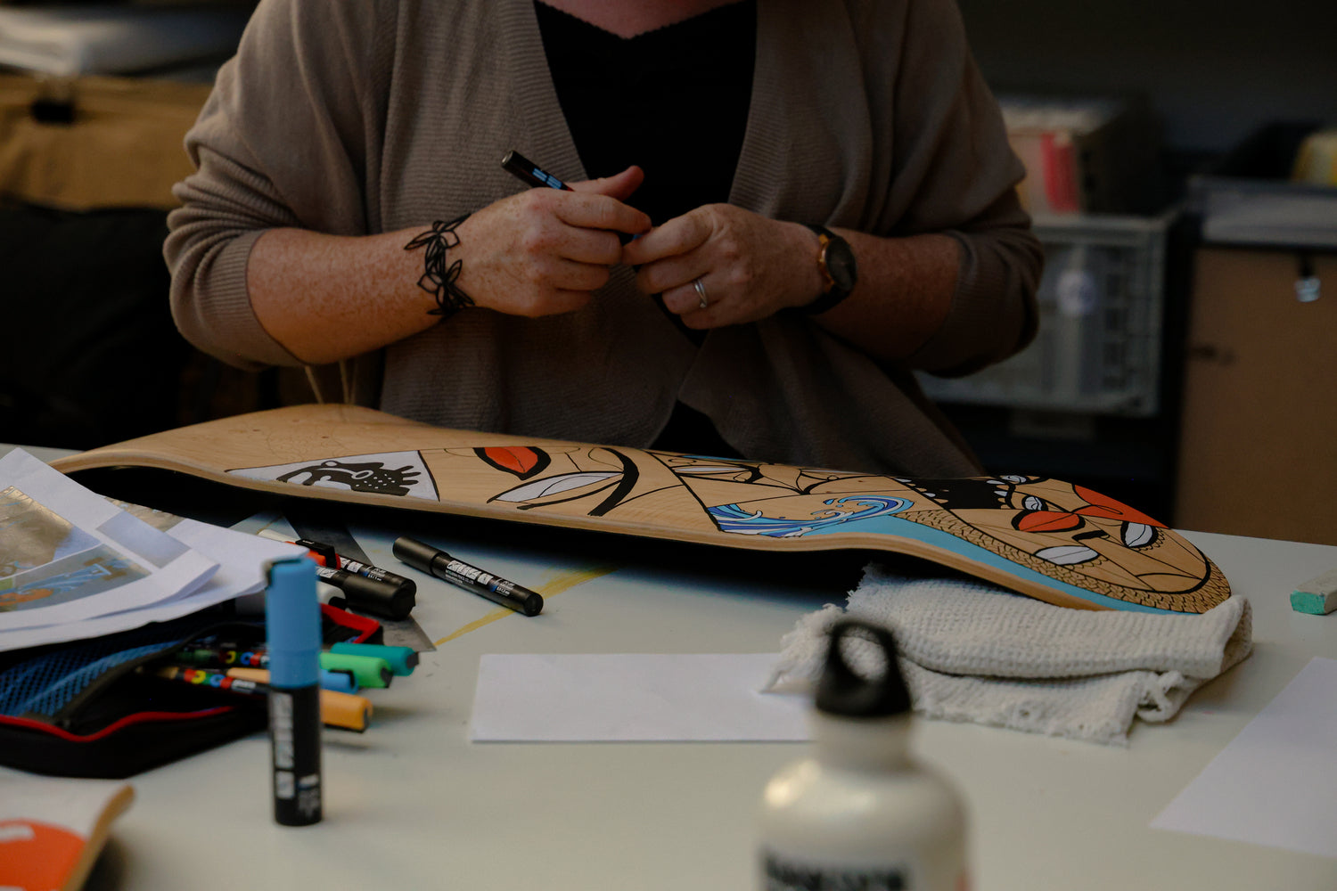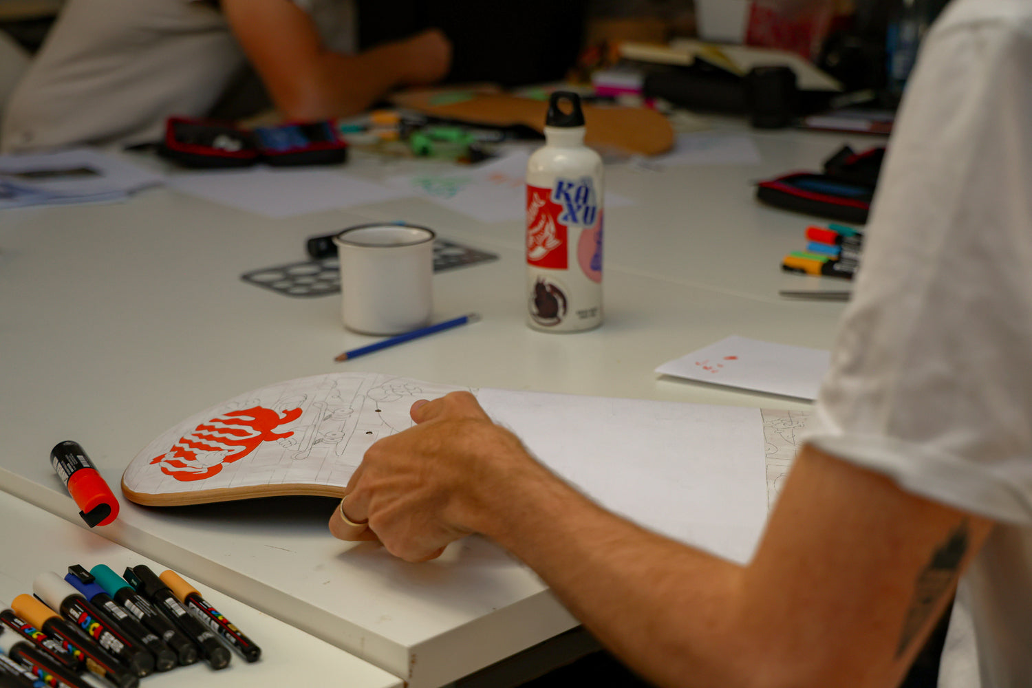 Ce workshop ce n’est pas seulement la création d’une oeuvre sur une planche de skate, mais c’est aussi un moment d’échange et de partage d’expérience et de connaissance autour d’une même table pendant toute une journée créative.