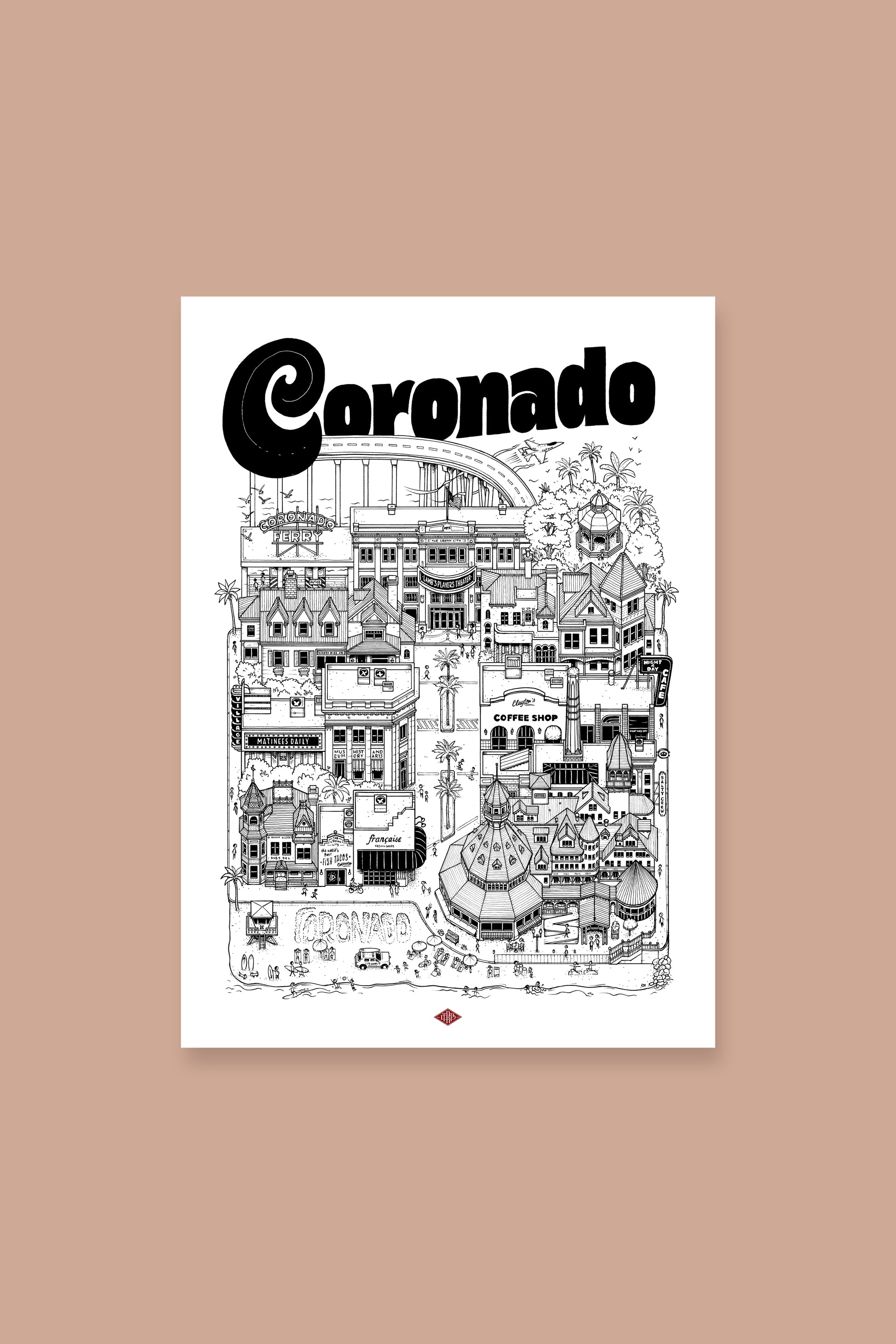 Affiche Coronado - Illustration de la ville - Docteur Paper