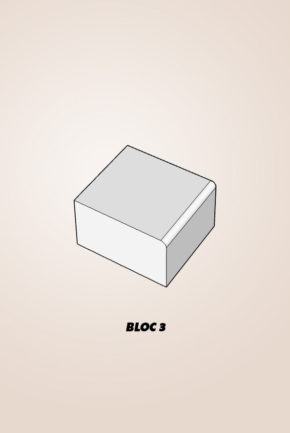 Au centre des blocs, blancs également, en volume.