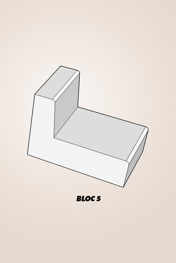 Spécialement pour l'occasion, au Salon de l’Habitat, ces blocs prennent la forme d’un canapé modulable conçu sur mesure par l’artiste.